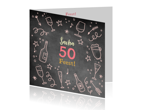 Uitnodiging 50e verjaardag vrouw glazen krijtbord