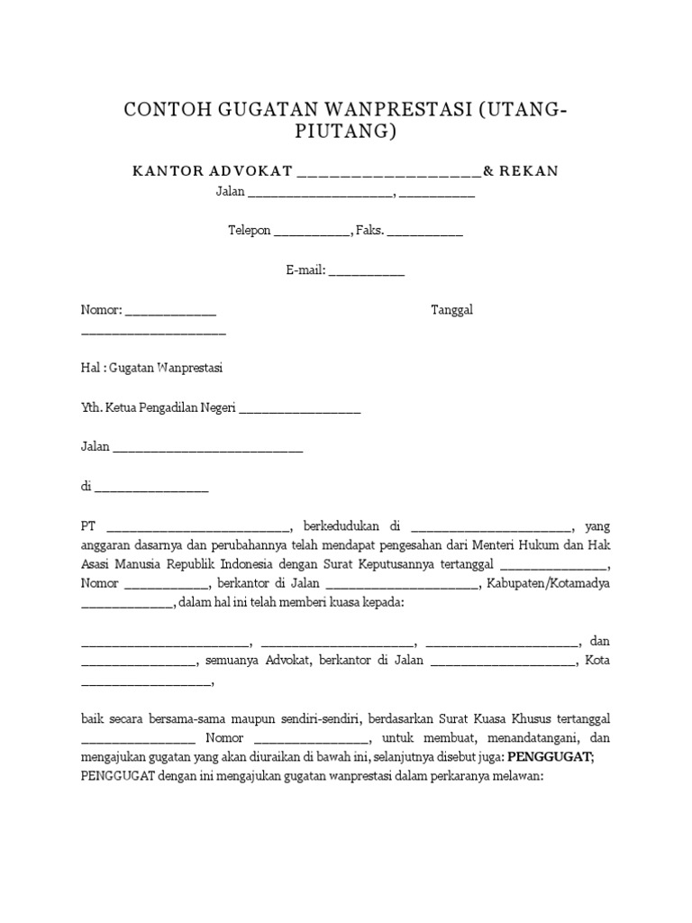Contoh Surat Khusus Gugatan Wanprestasi - Download Kumpulan Gambar